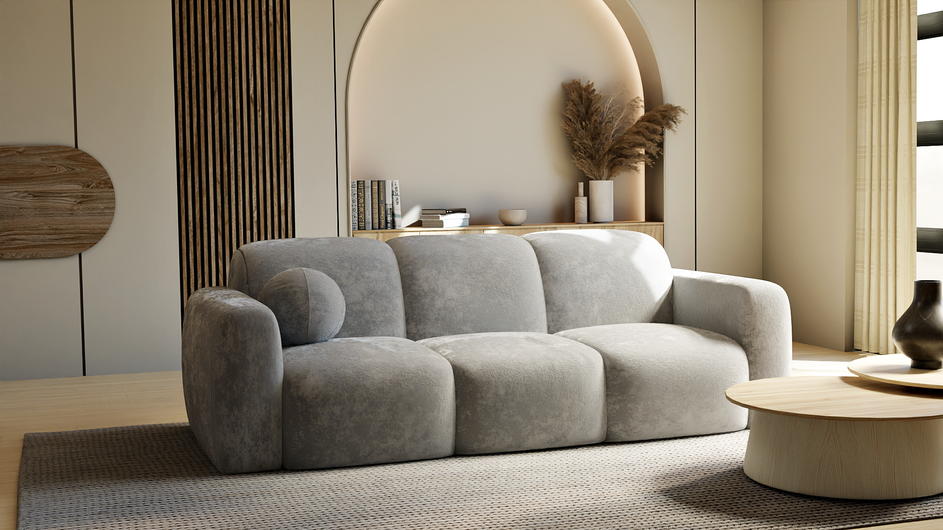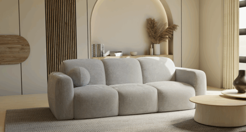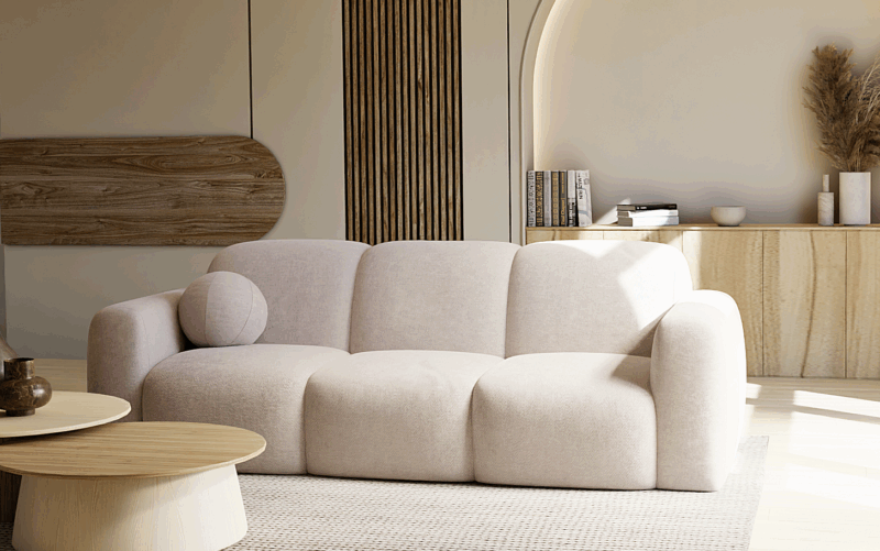 Sofa BALU to kwintesencja nowoczesnego designu w przytulnym wydaniu. Jej charakterystyczne, zaoblone kształty przyciągają wzrok i nadają wnętrzu przytulnego charakteru. Wnętrze sofy wypełnia starannie dobrana kompozycja komfortowych pianek wysokoelastycznych HR, które – wsparte na sprężynach falistych – zapewniają wyjątkową miękkość i wygodę użytkowania. Możliwość wykonania sofy w szerokiej gamie tkanin, pozwala na pełne dopasowanie do indywidualnych potrzeb i stylu wnętrza.