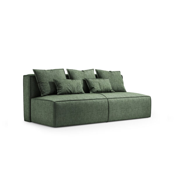 Sofa IGO utrzymana jest w stylu nowoczesnym, z subtelnym nawiązaniem do stylu skandynawskiego. Kompaktowa forma i wygodna funkcja spania typu DL dla 2 osób czynią ją idealnym wyborem niezależnie od metrażu pomieszczenia. Wsparta na solidnej, metalowej ramie sofa posiada siedzisko wypełnione sprężyną siedzeniową falistą w połączeniu z wysokiej jakości piankami tapicerskimi, obszerny pojemnik na pościel oraz silikonowe wypełnienie poduszek, co zapewnia wygodę i trwałość. Dodatkowo, sofa dostępna jest w szerokiej gamie tkanin, co pozwala dopasować ją do każdego wnętrza.