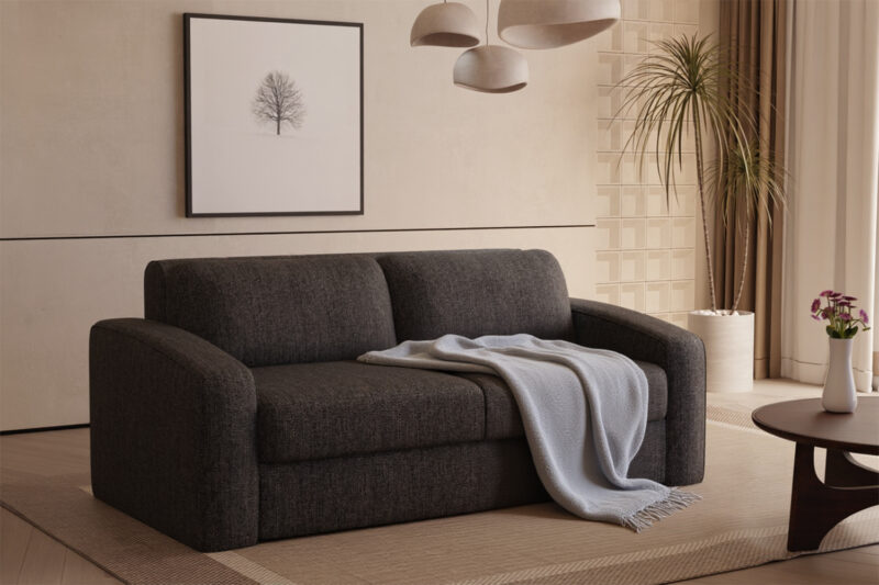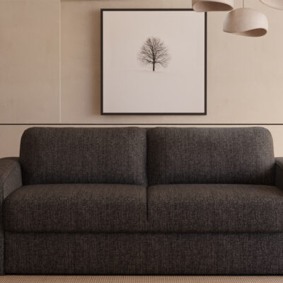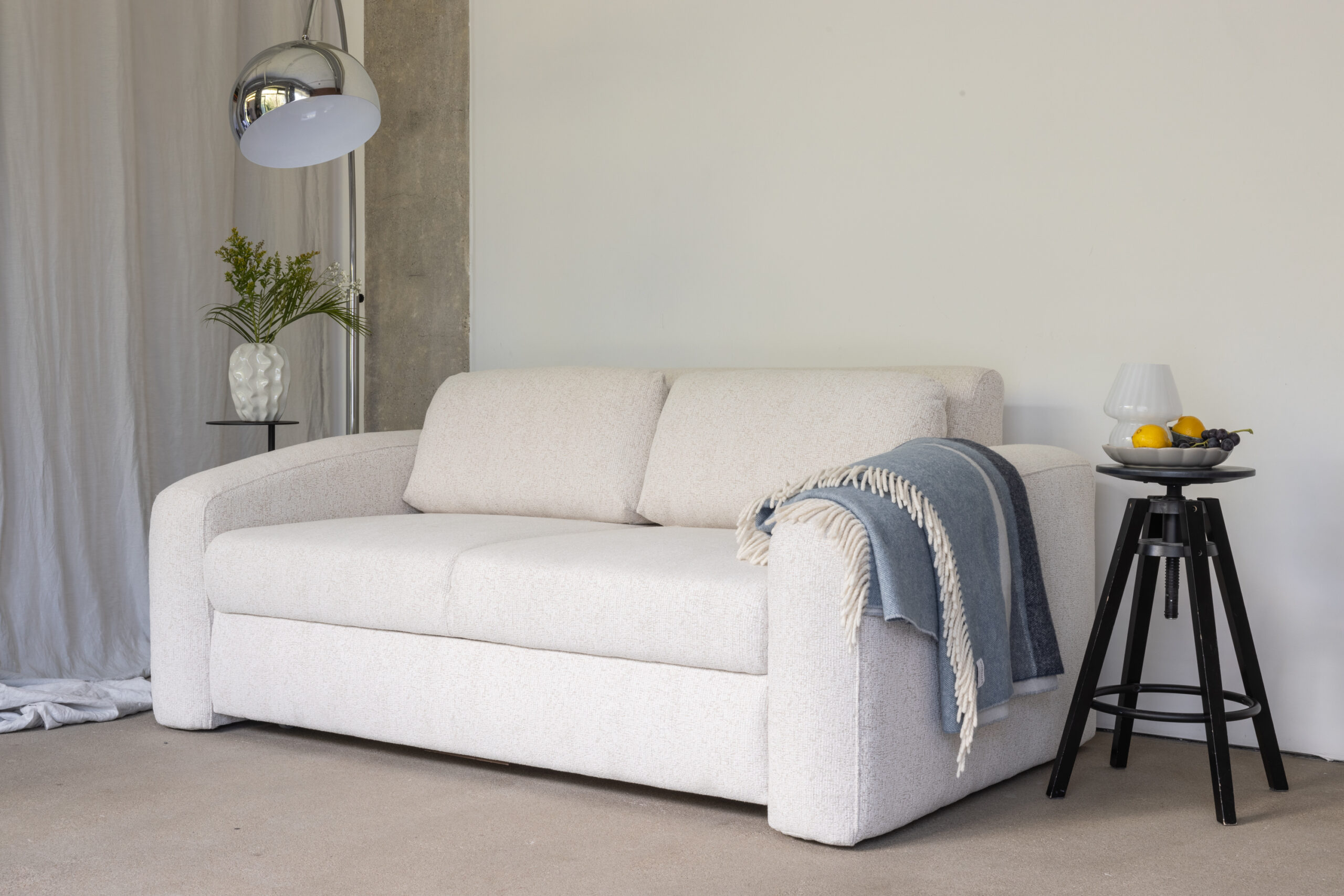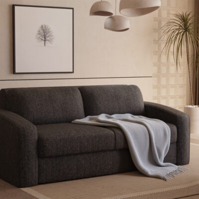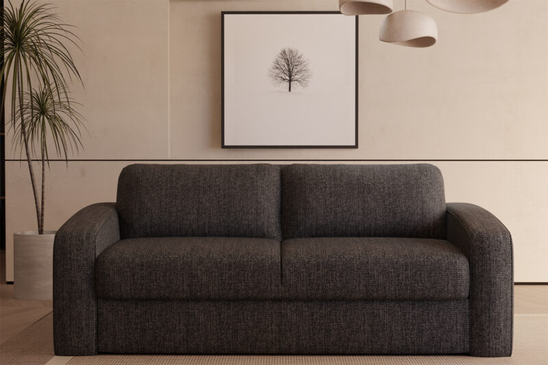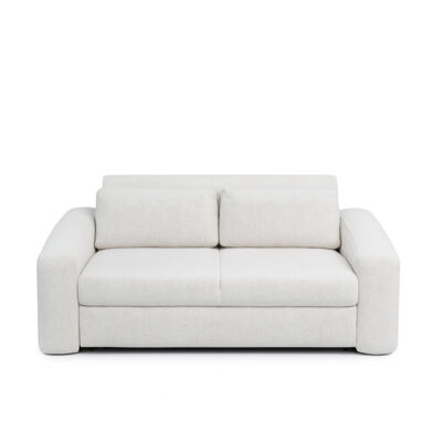 Sofa LOGO to ręcznie produkowany w Polsce mebel, który łączy trwałość z wyjątkową wygodą. Dzięki kompaktowym wymiarom doskonale sprawdzi się w mniejszych przestrzeniach, oferując niewielkie wymiary i komfort użytkowania. Posiada funkcję spania dla dwóch osób, a wypełnienie z połączenia sprężyn siedzeniowych falistych oraz kasetonu bonell w części siedziskowej i rozkładanej zapewnia elastyczne, trwałe podparcie zarówno w ciągu dnia, jak i w trakcie wypoczynku nocnego. Sofa LOGO dostępna jest także z praktycznym pojemnikiem na pościel, co czyni ją jeszcze bardziej funkcjonalną. Klient może wybrać także rodzaj tkaniny i kolor z bogatej kolekcji materiałów. To stylowa i wygodna sofa, idealna do salonu, pokoju gościnnego lub mieszkania w nowoczesnym stylu.