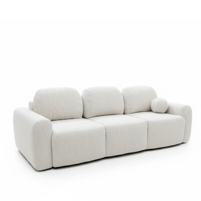 Sofa MIA łączy nowoczesny design z funkcjonalnością i komfortem. Zachwyca miękkimi, zaoblonymi kształtami, oferując funkcję spania i obszerny pojemnik na pościel. MIA wypełniona jest wysokoelastycznymi piankami typu HR, które zapewniają wygodę i trwałość, a szeroki wybór tkanin pozwala dopasować sofy do indywidualnego stylu.