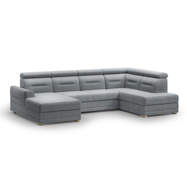 Dla zwiększenia wygody, siedzisko zostało wsparte podwójnym sprężynowaniem. Dzięki intuicyjnemu rozkładaniu typu delfin bardzo łatwo można przekształcić narożnik w powierzchnię spania, a pościel bez problemu schowasz w dwóch obszernych pojemnikach.