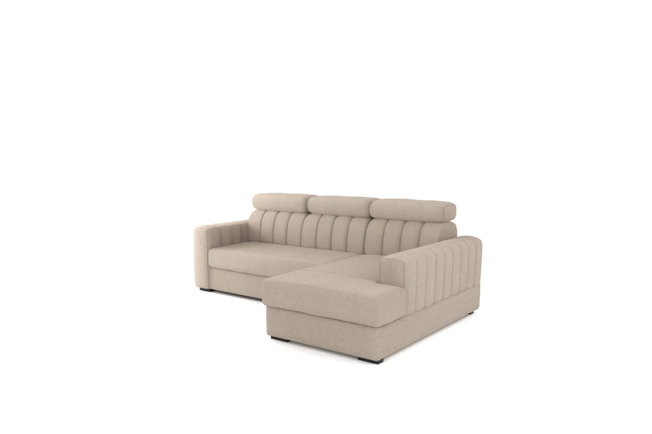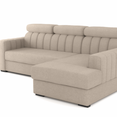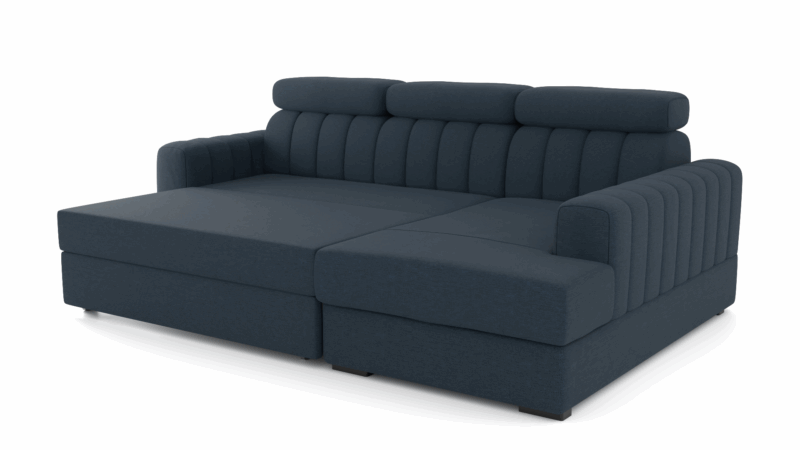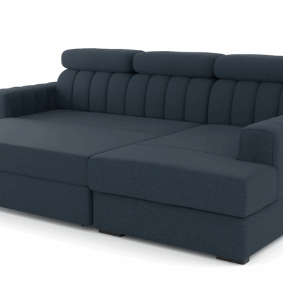 narożnik z funkcją spania, pojemnikiem na pościel oraz regulowanymi zagłówkami